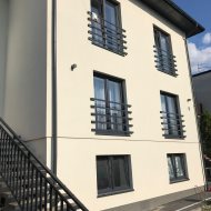 Dom składa się z trzech pięter i na każdym piętrze znajduje się mieszkanie o powierzchni ok 85 m2. Mieszkanie na parterze jest nieco niższe niż standardowe. Prezentowane zdjęcia przedstawiają apartament który znajduje się na pierwszym piętrze. Obecnie wszystkie mieszkania są wynajmowane.