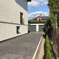 Na terenie posesji znajduje się duży garaż na dwa auta oraz dodatkowe miejsca do parkowania.