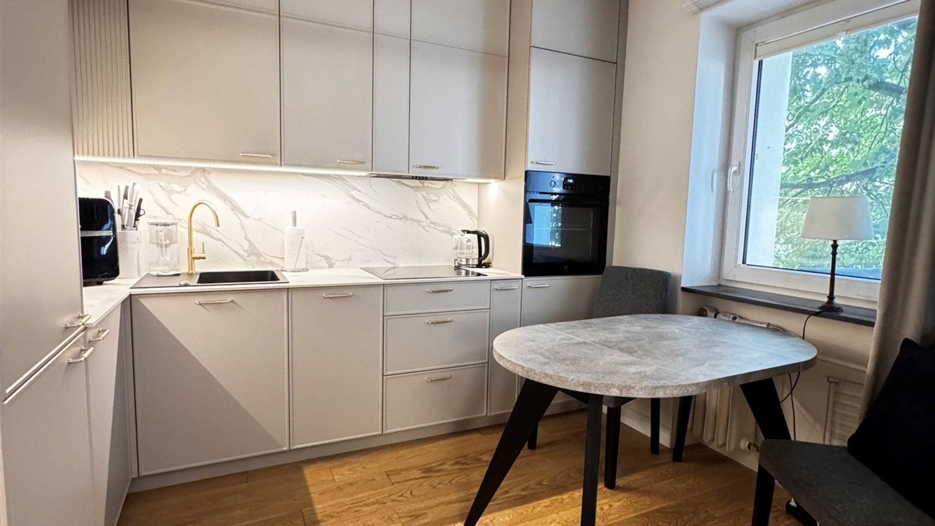 Mieszkanie zostało zaprojektowane przez architekta wnętrz, zostało wykończone z dbałością o każdy detal. Sprzęty AGD najwyższej jakości, drewniana dębowa podłoga. Piękna klatka schodowa oraz nowa elewacja budynku.