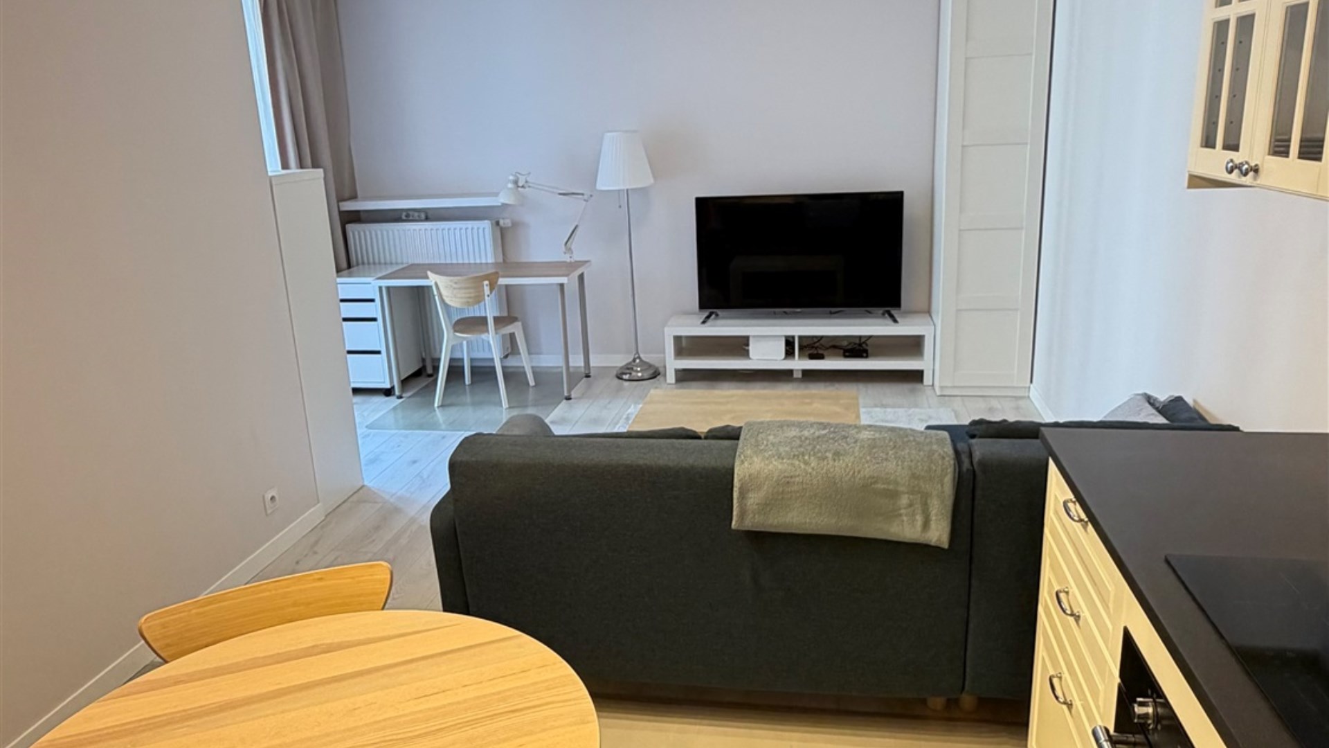 Mieszkanie składa się z salonu z aneksem kuchennym wraz z balkonem, sypialni z dużym wygodnym łóżkiem, przedpokoju oraz łazienki.